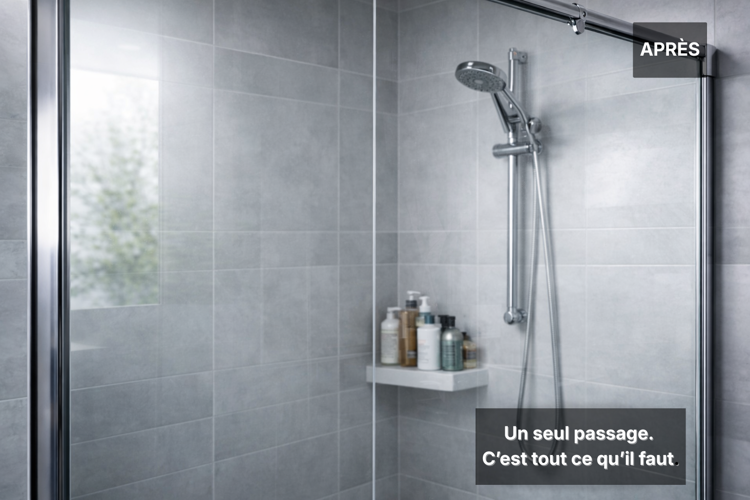 Formidable, laisse la paroi de douche et la robinetterie comme neuves.