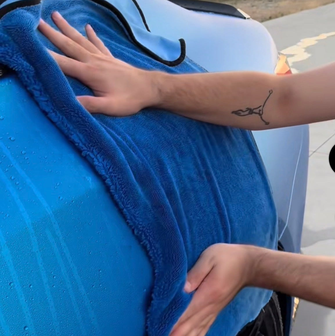 Après le lavage de votre véhicule, passez la serviette lentement et uniformément sur la carrosserie. Sa microfibre ultra absorbante capture l’eau instantanément pour un séchage rapide et sans traces. Vous pouvez également l’utiliser en tapotant légèrement les zones difficiles d’accès (rétroviseurs, joints, poignées).